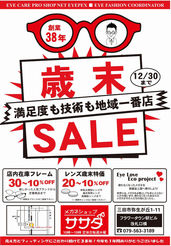 歳末セールがスタート! 投稿日: 2025年12月2日2025年12月2日 投稿者: ササダスタッフ今年も一年間ありがとうございました!感謝の気持ちを込めて歳末セールがスタートしました12月30日火曜日まで!